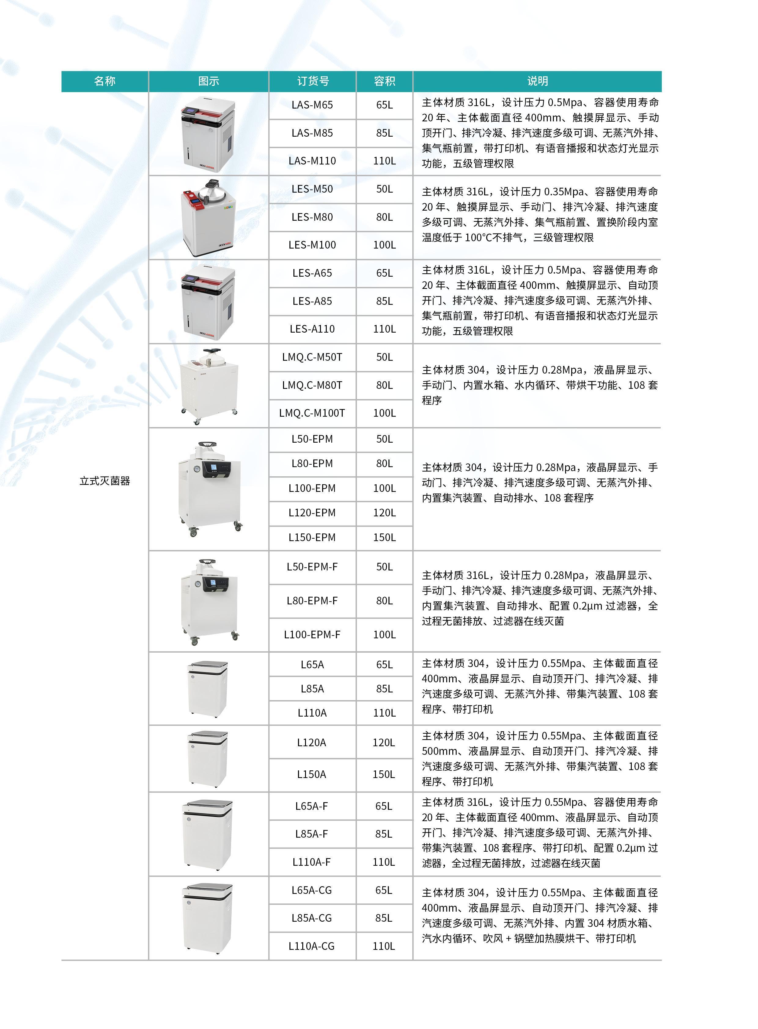 立式灭菌器是以高压湿热蒸汽为介质,实现对器械、实验室器皿、培养基以及非封闭液体或制剂、与血液或体液可能接触材料的彻底灭菌。